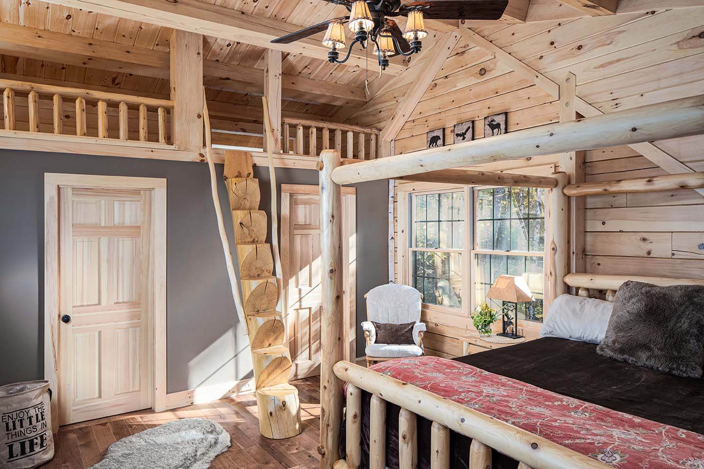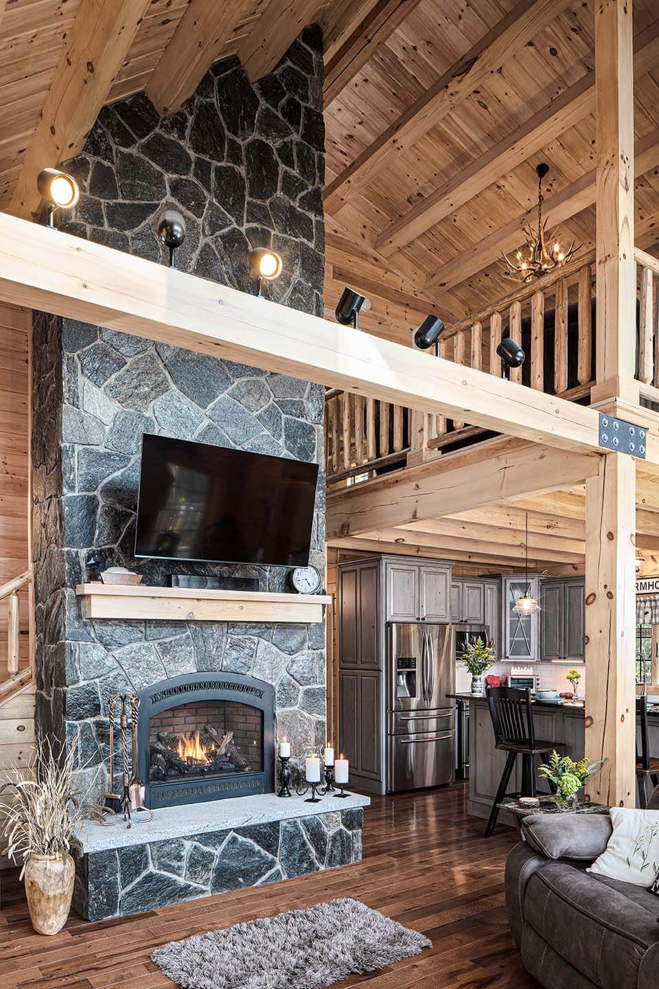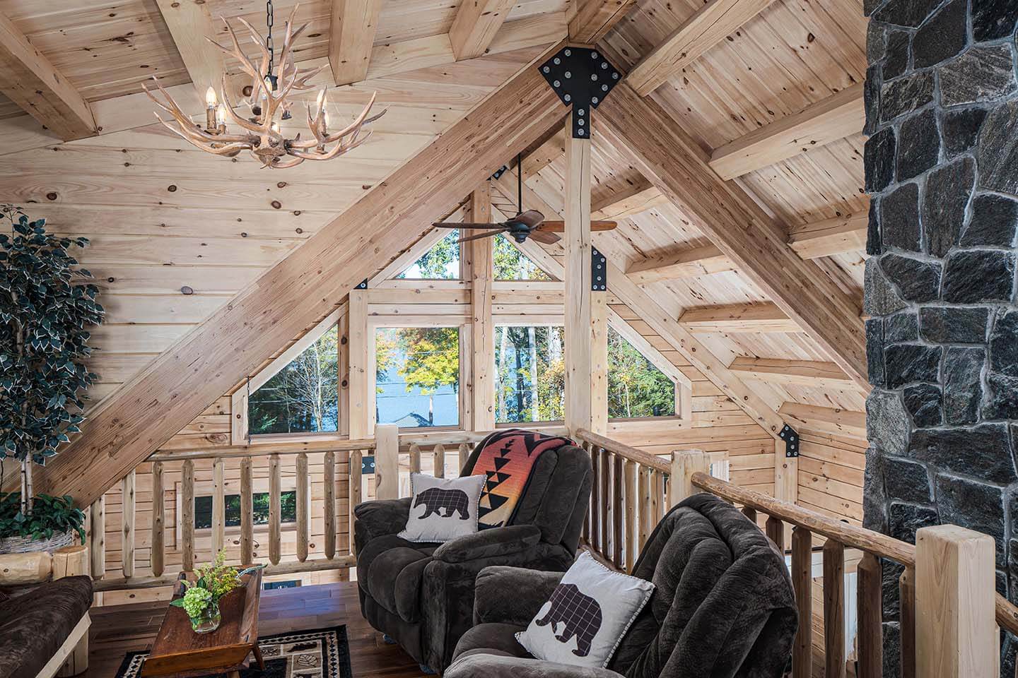 The Skyline is a charming craftsman constructed chalet style home offering our distinctively modern open concept design. Access an 10’ x 35’ open deck in front of the signature gable end featuring a wall of windows and a slider and let the ever-changing weather and lighting patterns become an intentional living mural. The two bedrooms with closets and a common bathroom between are at the rear of the home and could easily be converted for other uses with decor changes. The entire upstairs is dedicated to the master bedroom suite. The suite is made spacious and architecturally interesting with the addition of a dormer and cathedral ceiling.