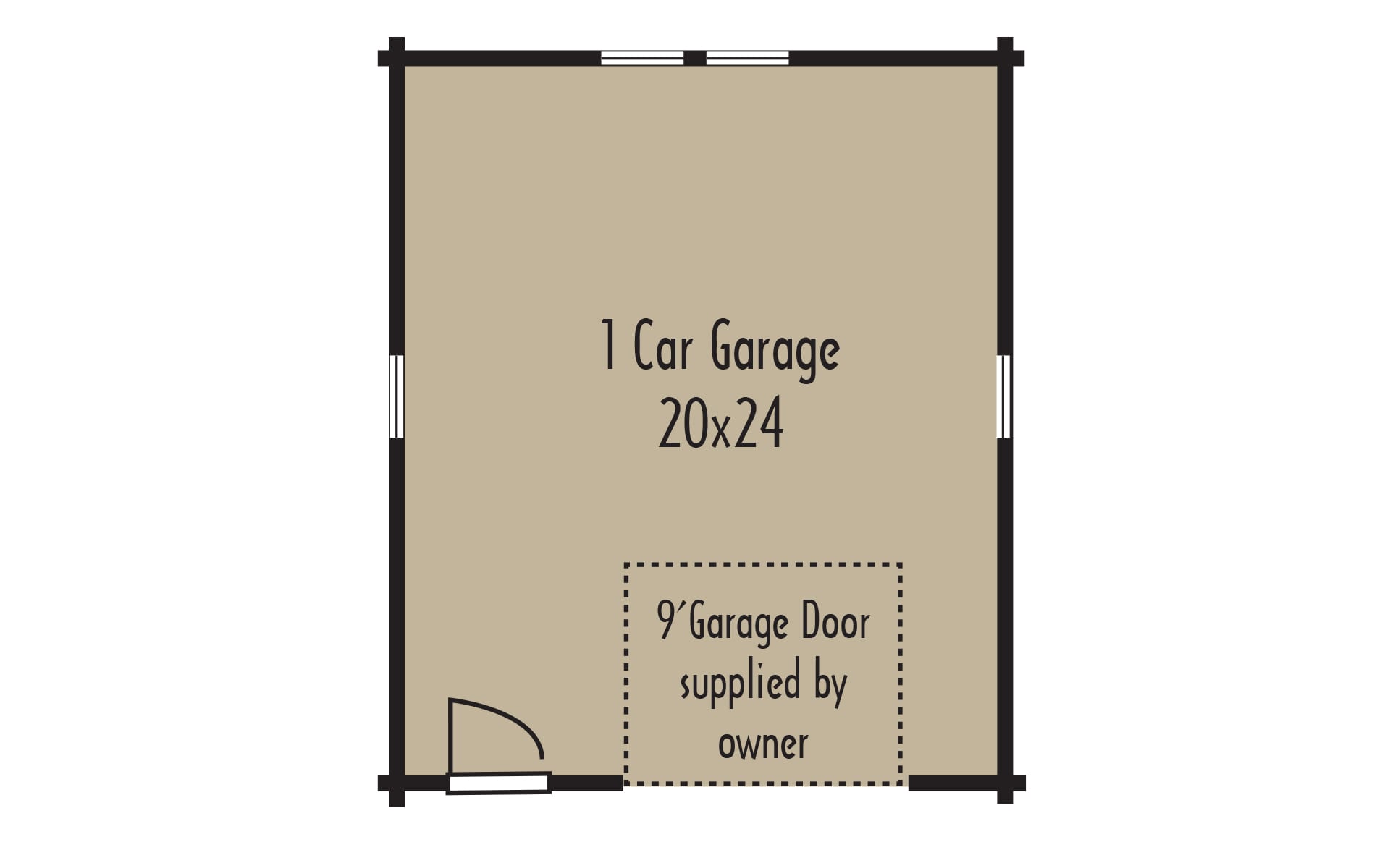 Coventry Log Homes offers garages to match your log home. This one car garage offers a 20' x 24' foot print with a total of 480 square feet of space. Coventry Log homes offers the options of a log sided or a full log garage.