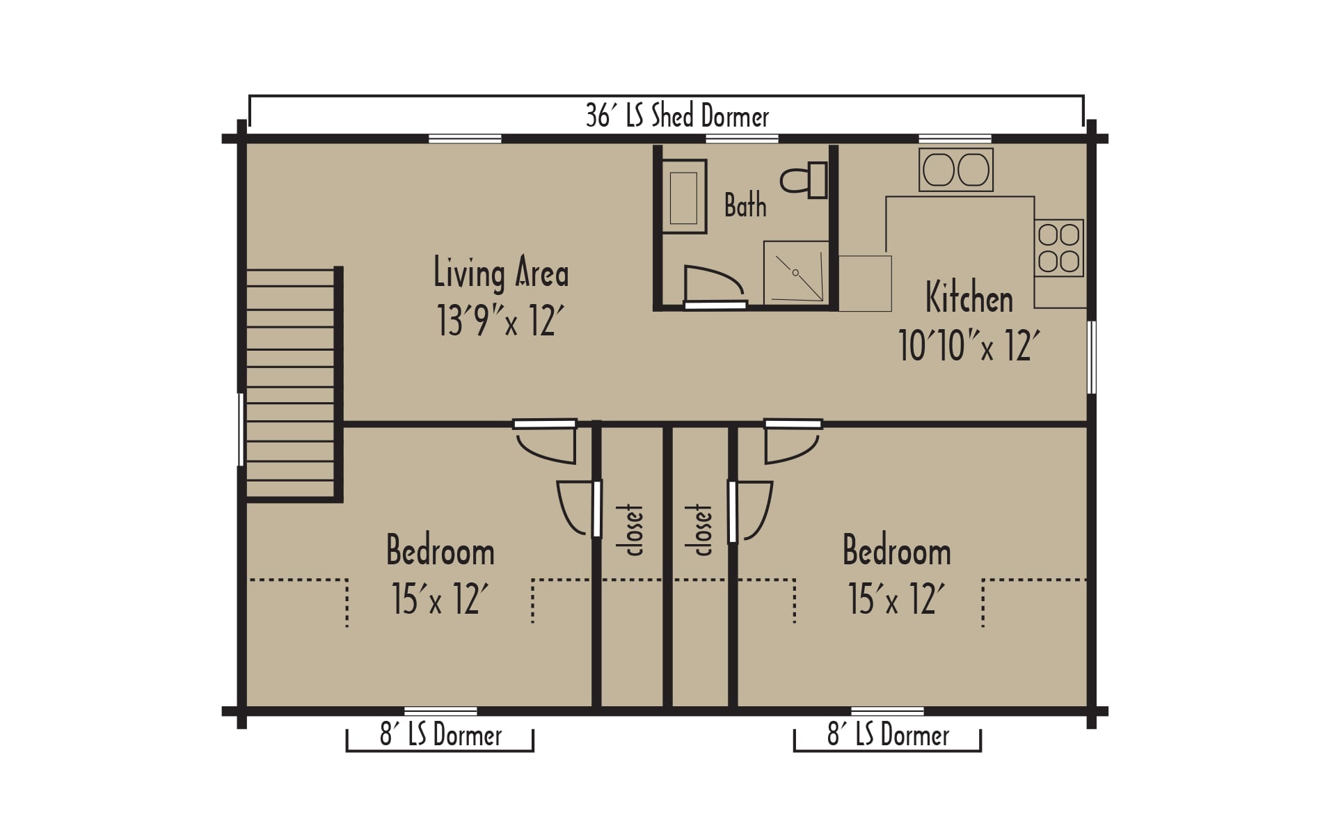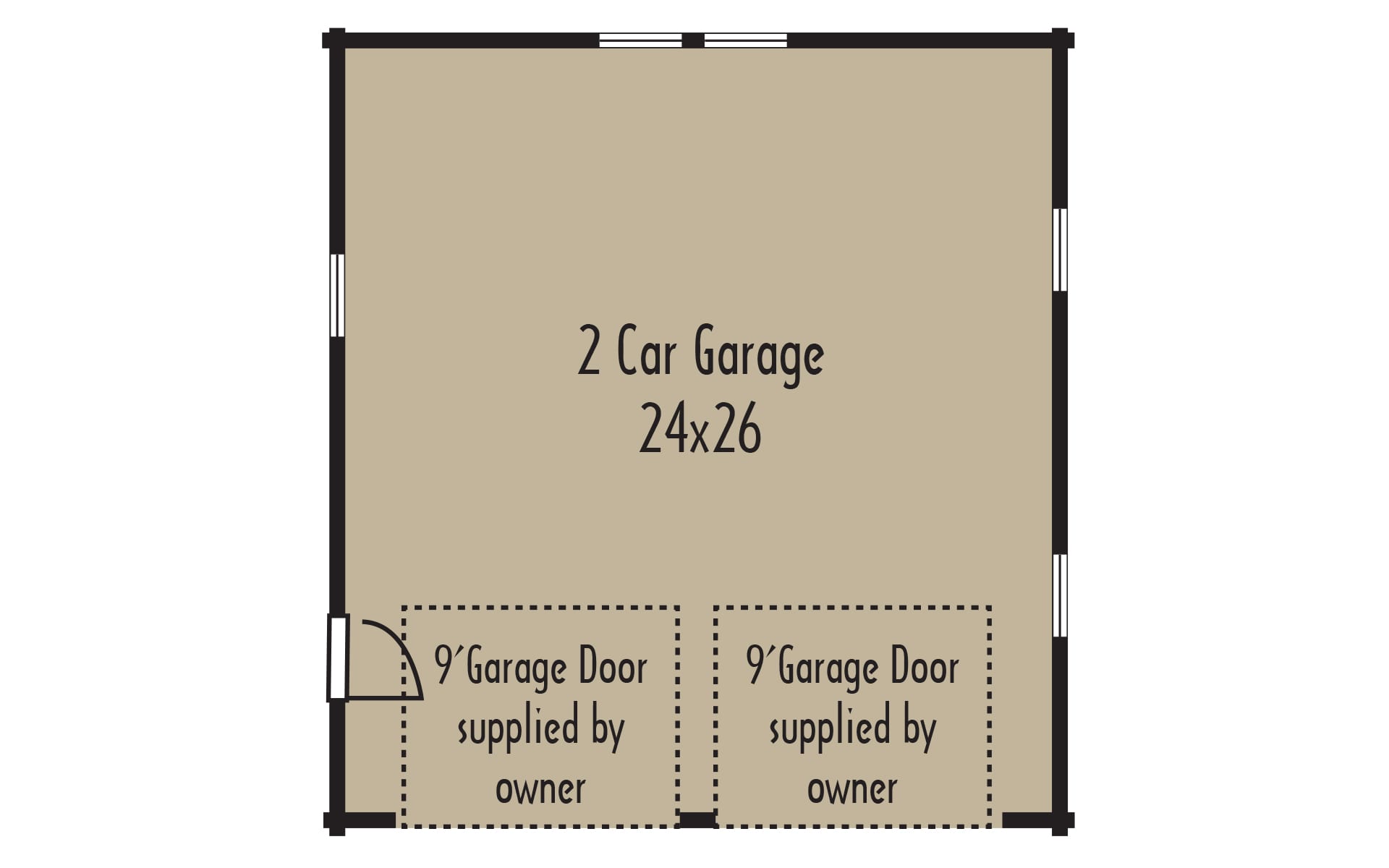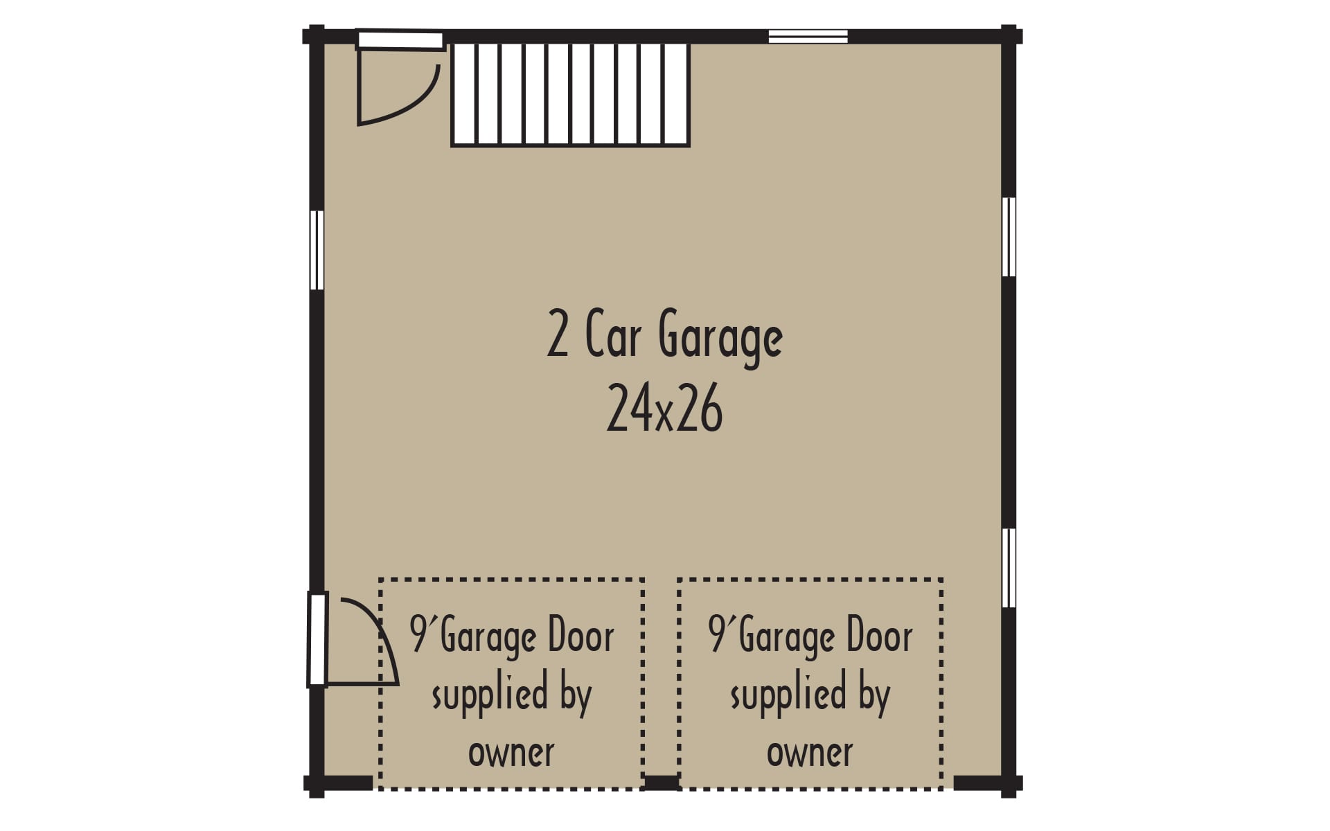 Coventry Log Homes offers garages to match your log home. This two car garage offers a 26' x 24' foot print with a total of 624 square feet of space. Coventry Log homes offers the options of a log sided or a full log garage.