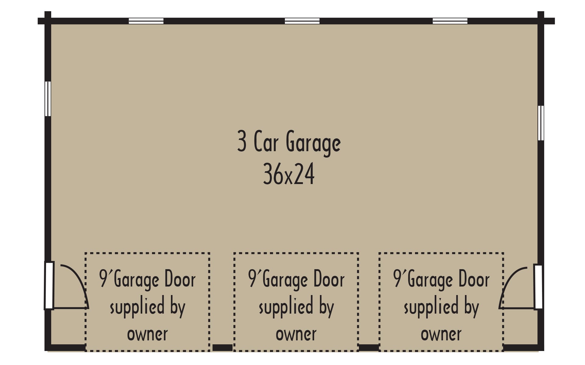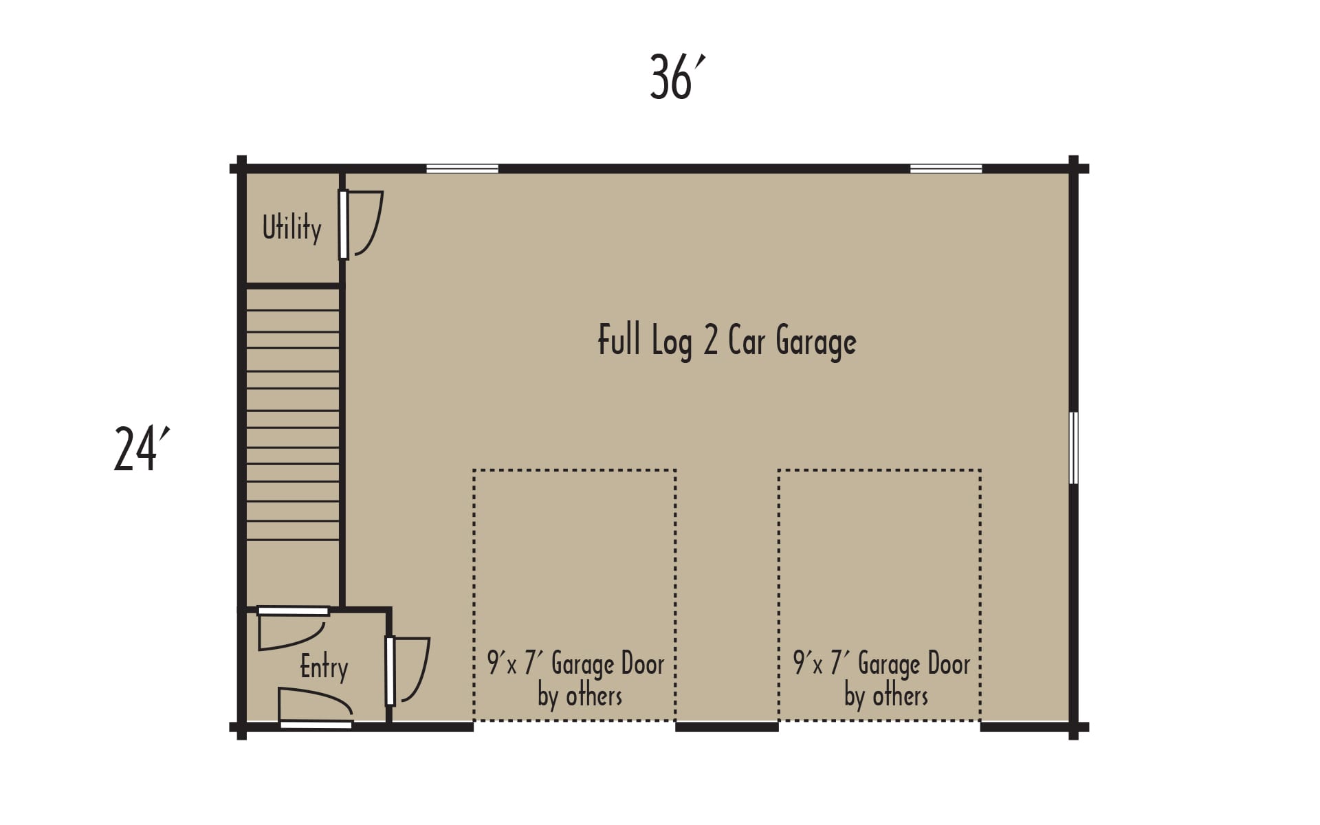 Coventry Log Homes offers garages to match your log home. This Three Car Garage offers a 36' x 24' foot print with a total of 864 square feet of space. Coventry Log homes offers the options of a log sided or a full log garage.