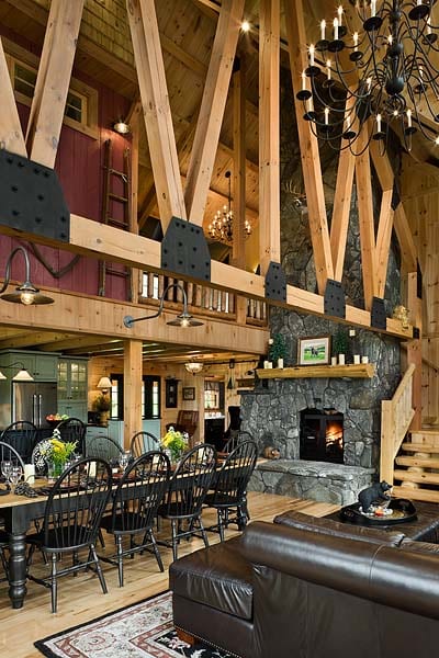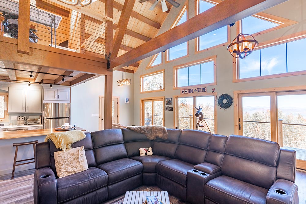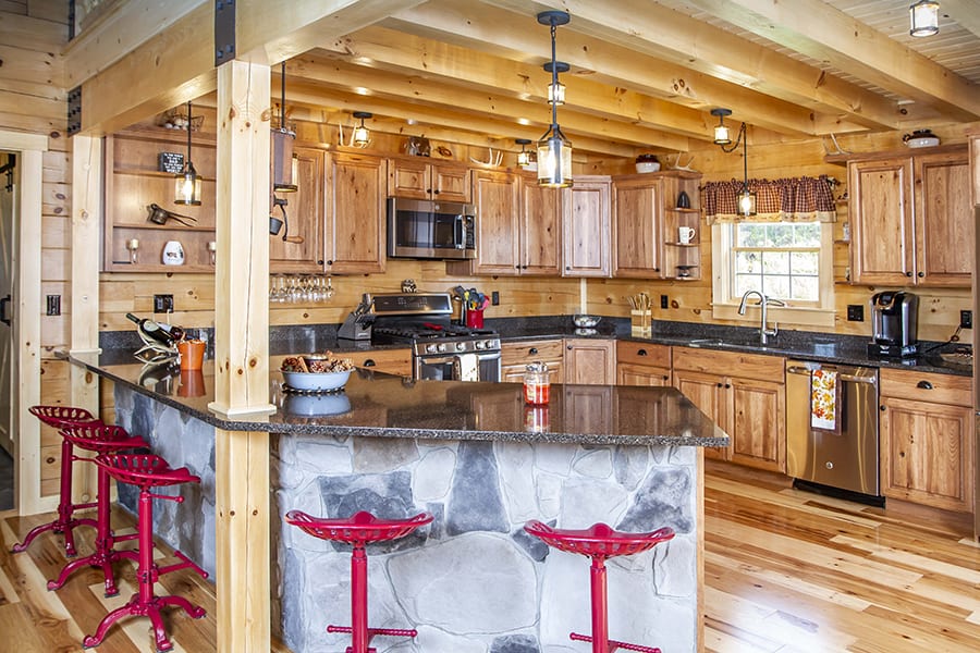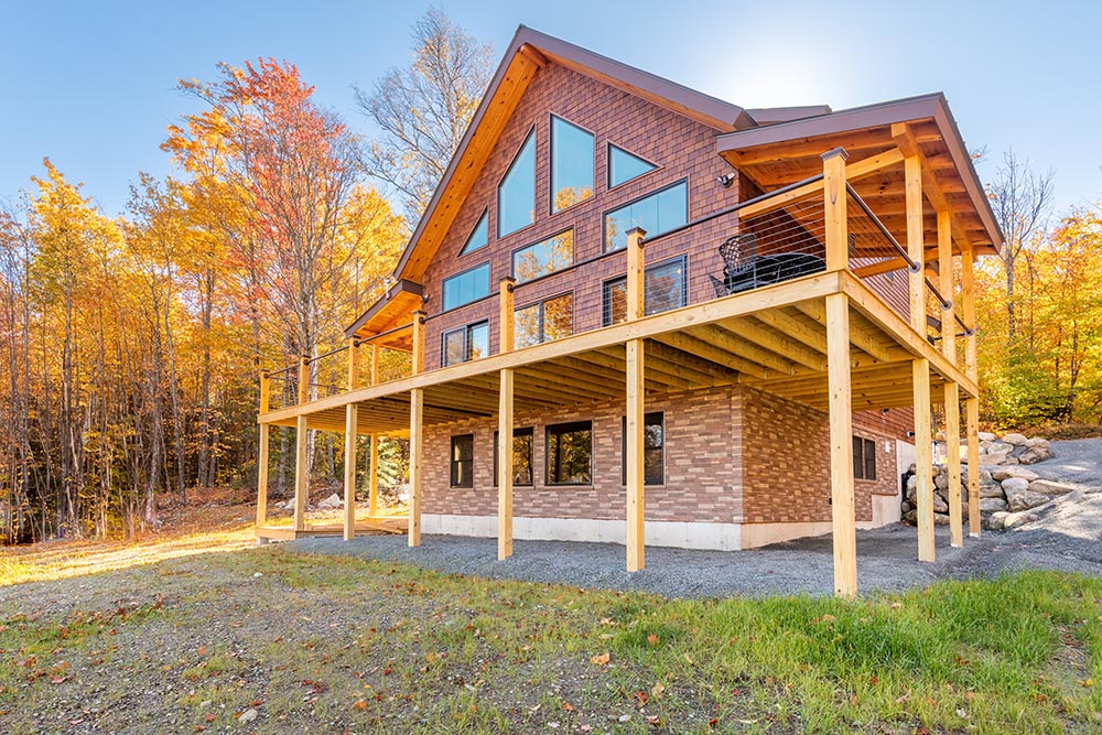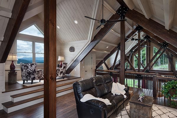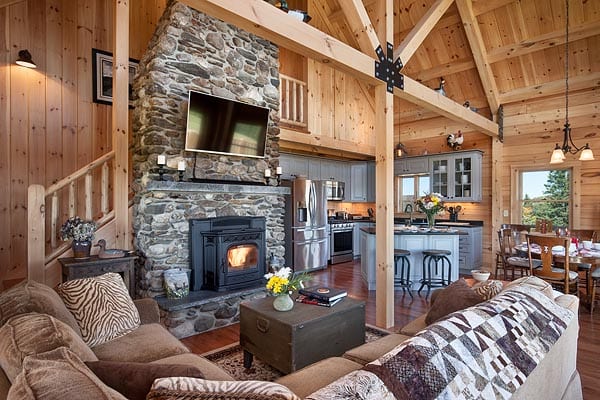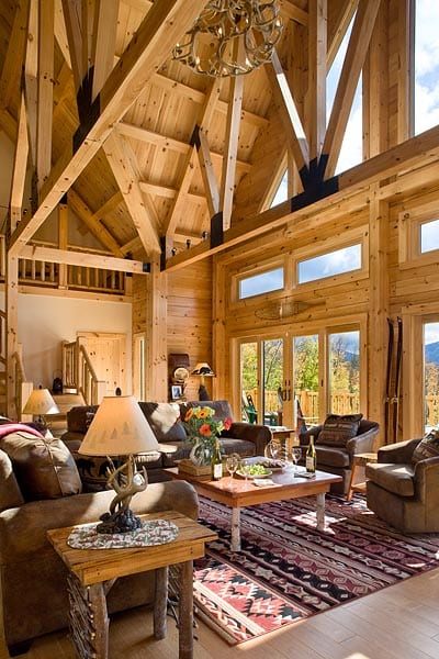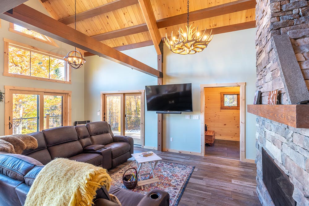Our Adirondack style homes feature a rugged timber frame roof and loft system. The large exposed beams become a focal point of the home and creates the “cabin feel” that so many desire.