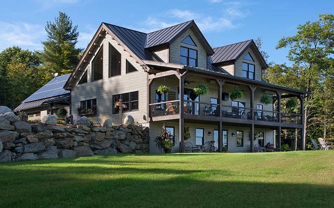 A hybrid home system is a mix of building materials: timber; logs, stone, drywall etc. Our system allows you to pick and choose and mix and match exterior siding and interior wall options to customize your home for the exact look, feel and budget you have in mind.