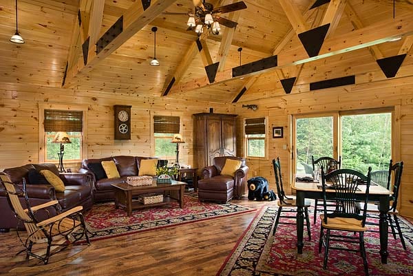 Truss & Purlin Beam System With T&G Pine • Architectural Shingles or Metal Roof Options • Designed For Your Snow And Wind Loads