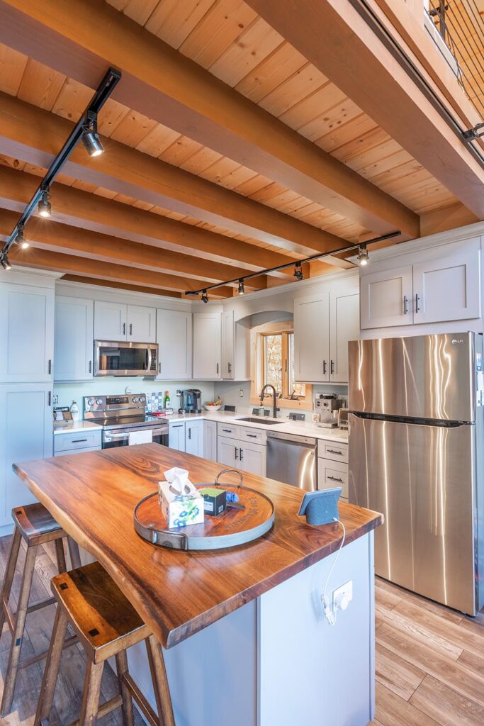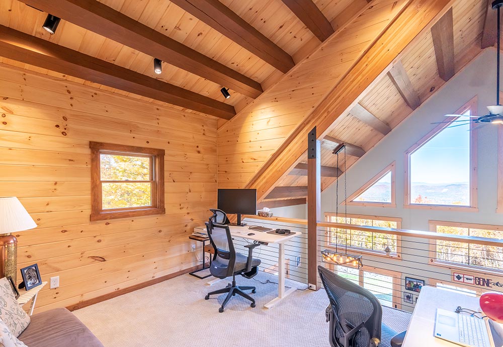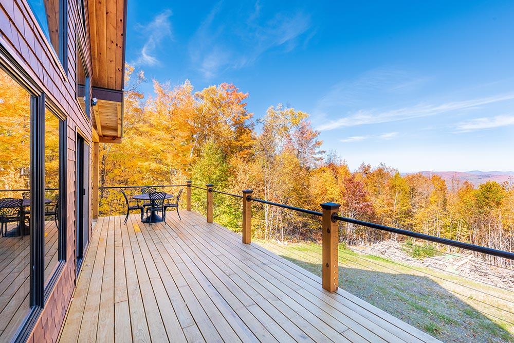 Heavy Timber Joists • Girder • 2x6 T&G Subfloor • Round Railings • Heavy Timber Stairs