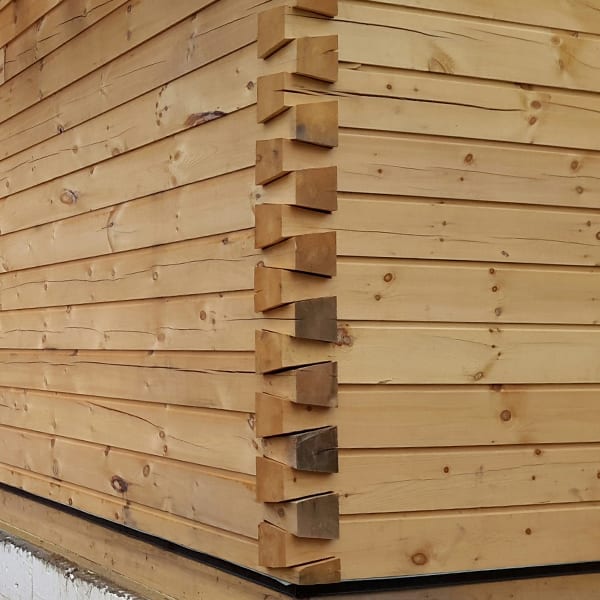 These square/chinked logs have a flat edge with a chink cutout on the exterior and a flat edge on the interior. These logs are cut from kiln-dried eastern white pine. The sealing system does not require using the chinking unless you want that look.