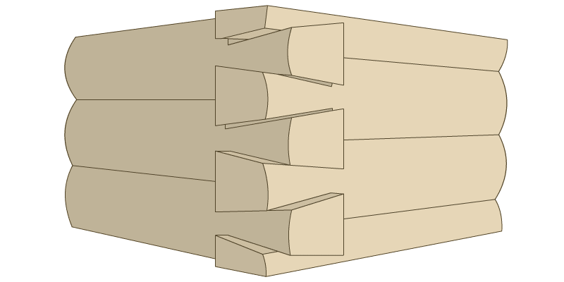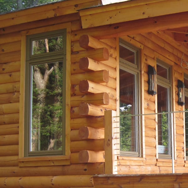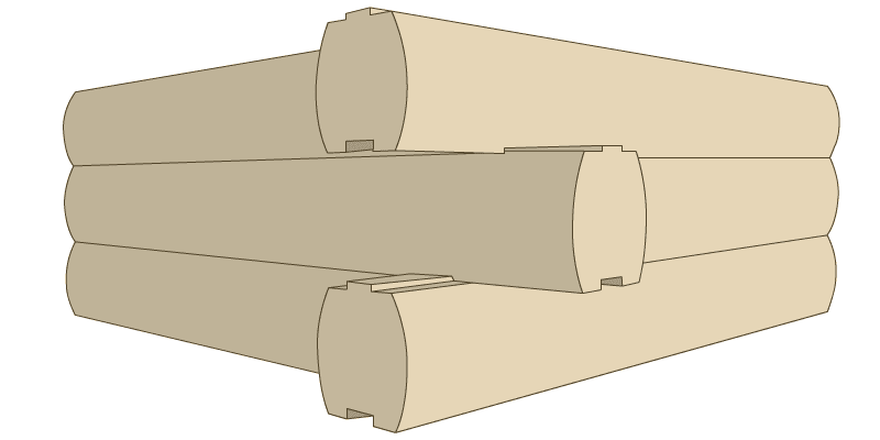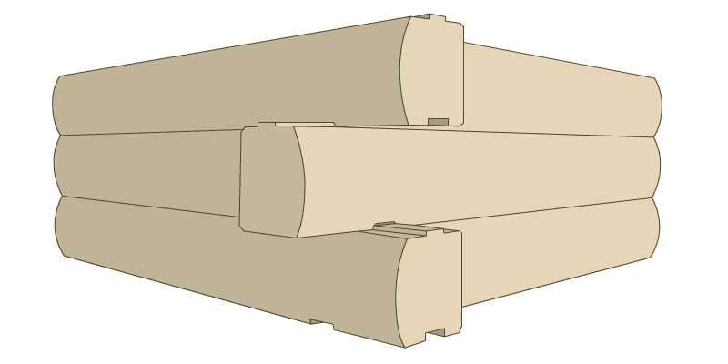 This is our standard log profile with a rounded edge on the exterior and a flat edge on the interior. These logs are cut from kiln-dried eastern white pine.