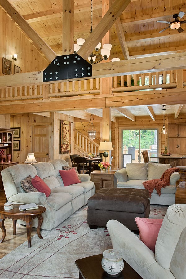 The Sunapee, was designed to provide a measure of independence and privacy for an aging parent and while dedicating the loft for guest accommodations the family living space was kept to the ground floor. The addition of the loft resulted in an expansive cathedral ceiling giving the open concept design a lavishly modern flair. The attached garage is another convenient consideration for retirement and the years leading up to it.