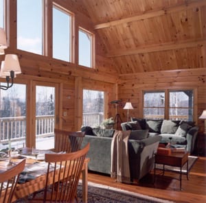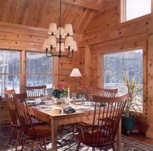 This model was featured in the November 2005 issue of Country’s Best Log Homes. It’s covered porch wraps to an open deck where a wall treatment of windows and doors bring light and views into the home.