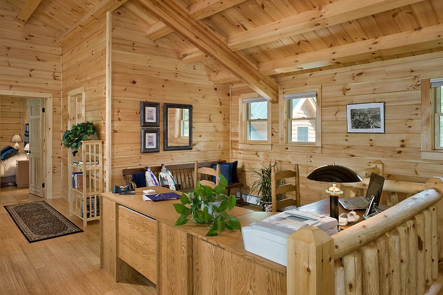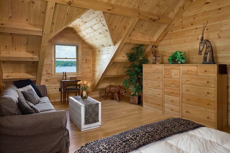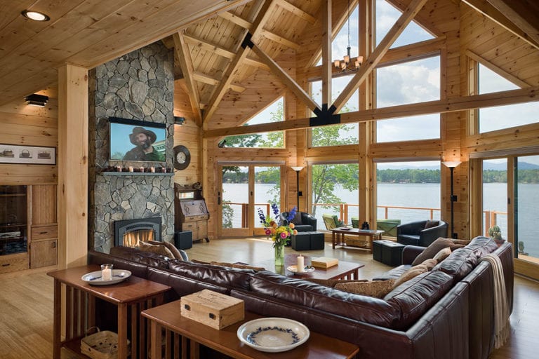 The Bay View was designed to let in an abundance of natural light and to take in lakefront views from every room. It was also important to ensure that the design would accommodate the homeowners now and well into their advancing years. This home accomplishes these design challenges with elegance. A gym over the attached 2-car garage is a must for the now and the master suite on the ground floor is not only good for now but later when their health might necessitate it. The guest rooms are located upstairs and this loft area creates a 2-story wall of windows for allowing the light and views that were so important in their design goals.